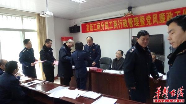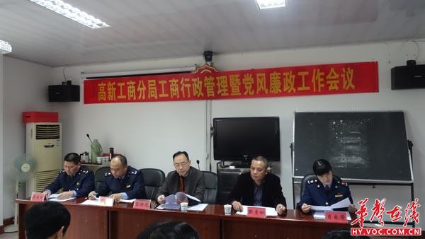 华声在线衡阳3月31日讯(黄亚辉 通讯员 赵芳)为贯彻落实全市工商和市场监管工作会议精神和市局党风廉政建设工作会议部署,3月31日上午,衡阳市行政工商管理局高新分局召开全局工商行政管理暨党风廉政建设和反腐败工作会。会议回顾和总结 2016年工作,表彰先进单位,安排部署 2017 年工作任务。市局党组成员、纪检组长昌曙光,广告科科长彭青松出席会议。会议由党委副书记、副局长肖东芳主持。