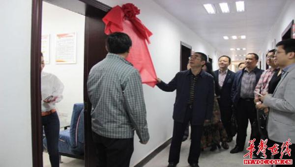 石鼓区政协主席王仲晓和政协副主席李长刚为青山街道船山路社区委员工作室揭牌