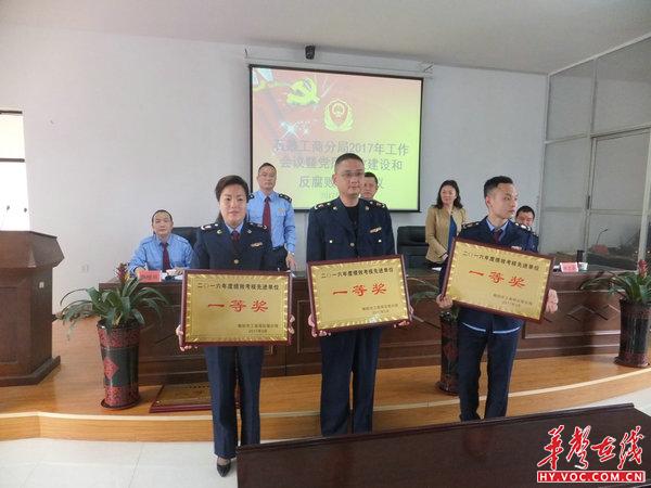 会上,党委书记、局长罗剑波从“真抓实干,积极作为,各项工作取得新成果”总结了2016年工作;从“认清形势,坚定信心,准确把握十三五市场监管新要求”分析了存在的问题和不足;从“撸起袖子,趁势而上,全力推进2017年工作取得新突破”作了全年工作部署。党委委员、纪委书记李细根总结回顾了我局2016年党风廉政建设和反腐败工作,安排部署了2017年党风廉政建设和反腐败工作。党委副书记、副局长代表党委宣读了2016年先进单位和先进个人的表彰决定。会上对获得先进单位和先进个人进行了颁奖。各股(室)、所负责人向分局罗剑波局长递交了2017年相关工作责任书。石鼓区副区长吴颖的讲话,对我局2016年工作给予了充分肯定,对2017年工作提出了三点希望:一是要进一步深化商事制度改革,在全面落实企业“五证合一”改革基础上,推进个体工商户“两证合一”改革;二是要进一步加强市场监管执法,营造创业发展的良好环境;三是要进一步打造担当有为的工商队伍,提升服务经济发展能力。