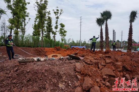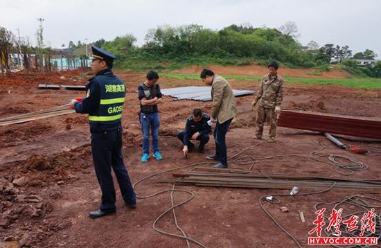 华声在线衡阳站4月21日讯(吴长发 通讯员 陈仁杰)4月18日上午,石鼓路政中队人员在巡查中发现S80松木收费站外广场左侧外有人在施工,执法人员通过对现场人员进行询问得知,此处是衡阳市松木经开区政府正在架设一块非公路标志标牌而进行的违法施工。