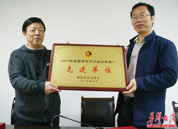 会议表彰了2015年度湖南省校园武术段位制推广先进单位与先进个人、2016年湖南省武术工作先进单位,通报了今年1月份武术进校园试点学校武术比赛结果。