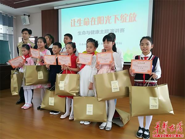 决赛中,选手们用丰富的内容、生动的语言、真挚的情感,结合当前社会热点和现象、身边的典型事例和自身学习生活经历出发,紧紧围绕“让生命在阳光下绽放”生命与健康这一主题,通过讲述自身的故事,以感人的事迹、真实的图片、动情的音乐唱响了一首首生命的赞歌。来自人民路小学的江奕柯等7名同学获得一等奖;旭升小学的李雨晴等11名同学获得二等奖;演武坪小学的王紫彤等18名同学获得三等奖。本次比赛还评出了优秀组织奖和优秀指导老师奖。