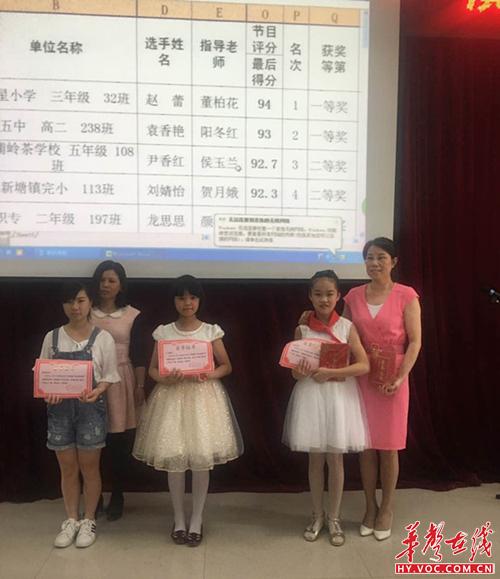 通过层层选拔,来自全县各学校的35名演讲比赛选手和36组朗诵比赛选手,按照抽签顺序依次上场。选手们紧紧围绕此次活动主题,从不同角度、深情并茂地讲述了校园里一个个温暖、有爱的故事,诵读了一篇篇经典美文。他们的演讲或朗诵各具特色,有的慷慨激昂,气势如虹;有的低沉温婉,感人肺腑;有的饱含深情,娓娓道来......比赛过程高潮迭起,精彩纷呈。经过激烈角逐,最终育星小学赵蕾与衡东五中袁香艳获演讲比赛一等奖;衡东一中唐梓睿与大桥完小刘玉、文韬组合分获朗诵比赛中、小学组一等奖。