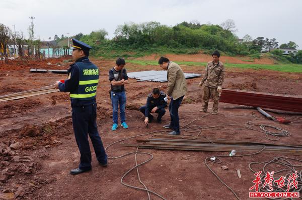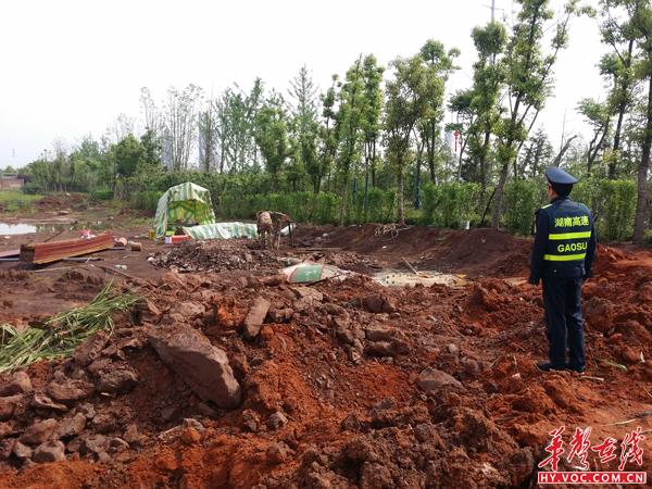 华声在线衡阳站5月16日讯(吴长发 通讯员 骆圣)2017年4月18日,石鼓路政中队接举报电话,在S80衡大路段松木收费站外广场连接道左侧有人员施工作业,预在此处设置大型高炮广告牌。