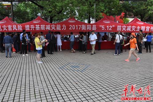 华声在线衡阳站5月16日讯(黄亚辉 通讯员 杨春阳)为进一步增强全县人民公共安全意识,普及公众防灾避险知识,切实提高人民群众应对突发事件的能力。5月12日上午,由衡阳县人民政府组织县国土、民政、安监、公安等部门在县夏明翰广场集中开展了全国第九个“5.12防灾减灾日”专题应急知识宣传活动。
