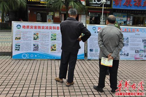 活动现场,通过设立“减轻社区灾害风险,提升基层减灾能力”主题背景板,利用户外电子频道滚动播放公众应急知识动漫片等内容,通过音响播报应急宣传知识,以介绍“《突发事件应对法》等法律法规和相关应急预案”摆放展板50余块,县民政、安监、国土等部门共设置40米长的咨询区,一边向群众发放地质灾害的形成、危害及防治措施等科普宣传资料,一边详细解答群众提出的防灾减灾相关问题。是组织宣传车一台,在县城主要街道巡游宣传,分别在该县25个乡镇采取张贴标语,悬挂横幅的模式,广泛宣传应急知识。