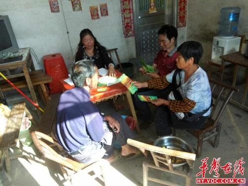 农户认真阅读退耕还湿宣传手册