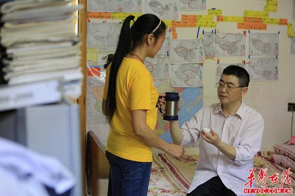 贺朝阳作为培训学校的老师,遇到教学方面的问题,总是向丈夫请教。两口子正进行工作上的交流。