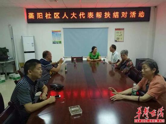 华声在线衡阳站6月1日讯(黄亚辉 通讯员 谢桂军 杨巧慧)为帮扶社区困难群体,近日,蒸阳社区与选区人大代表携手开展了“精准帮扶,结对同行”结对帮扶活动。市人大代表刘少文、区人大代表冯春娥等6位代表对蒸阳社区席贤敏、许爱、洪善锦3户帮扶对象开展帮扶慰问活动座谈会。