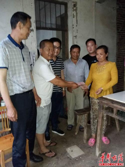 华声在线衡阳站6月6日讯(唐雁春 通讯员 唐鑫 李惠蓉)周诗秋,湖南衡山萱洲糖铺周家湾人,于2017年4月18日骑摩托车意外出车祸摔到头部当场死亡。家里上有快90岁的患癌老母亲,下有8岁和9岁女儿正在读书的女儿,家里历来穷困,现在全家的重担更是都压在了周诗秋的妻子黄建英身上。