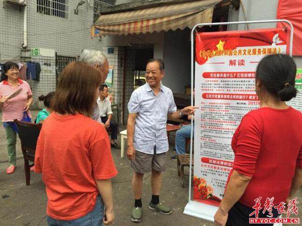 华声在线衡阳站6月14日讯(黄亚辉 通讯员 封姣妃)6月13日,衡阳市石鼓区青山街道船山路社区开展创建国家公共文化服务体系示范区暨《公共文化服务保障法》宣传咨询活动,居民掀起了《公共文化服务保障法》学习宣传活动的热潮,进一步营造学习、贯彻《公共文化服务保障法》的良好氛围。