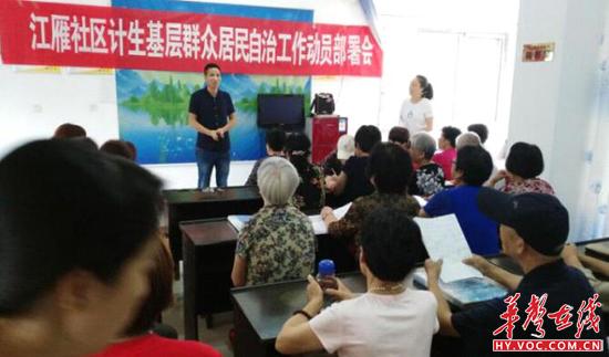 华声在线衡阳站6月15日讯(通讯员王梅华)6月14日,衡阳市石鼓区合江街道江雁社区组织召开计生基层群众居民自治工作动员部署大会。合江街道卫计工作分管领导李元平委员、卫计办工作人员、江雁社区全体工作人员、居民群众代表、育龄妇女代表、党员代表等50余人到会。