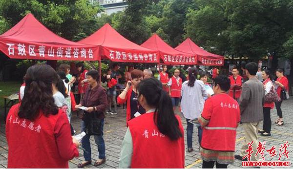 华声在线衡阳站6月16日讯(符志忠 黄亚辉 通讯员 邓文林)6月16日上午,莲湖广场人头攒动,各单位安全生产宣传咨询台一字排开,青山街道联合区安委办举办的安全生产宣传咨询日活动正式拉开序幕。