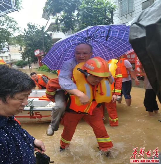 基层党员干部把行动不便的老人背出来