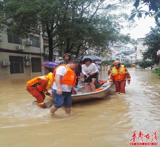 基层党员干部用冲锋舟紧急转移受困群众
