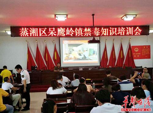 华声在线衡阳站7月5日讯(符志忠 黄亚辉 通讯员 蒋建衡)为帮助辖区内居民了解毒品及其危害,熟悉有关毒品控制的法律知识,增强识毒、拒毒、防毒、禁毒意识,7月2日下午,呆鹰岭镇组织全镇各村(社区)主干和企业负责人开展禁毒专题知识培训。