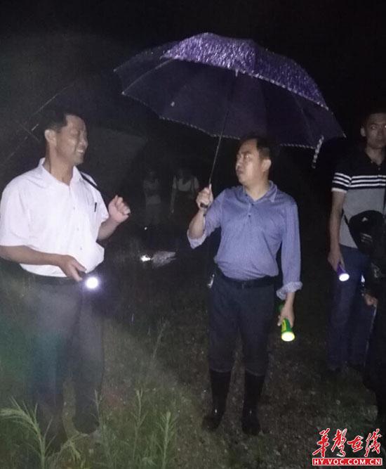 华声在线衡阳站7月6日讯(符志忠 吴长发 通讯员 刘先卫)7月1日晚上10点多钟,几束强劲手电光穿过密密层层的雨帘,划破幽深寂黑的夜空,伴随着一阵急促的脚步声,一个熟悉的身影出现在衡南县泉湖镇大星村扬冲水库堤坝上,原来该镇党委书记李春辉一行深夜冒雨巡查到此,只见他沉着应战指挥开闸泄洪,战天斗地现场一片沸腾。为确保全镇11座小二型水库安全度汛,在特大的洪灾和严竣的汛情面前,该镇党员干部英勇无畏,冲锋在前舍生忘死,为保卫人民的生命财产安全,交上了一份令全镇4万群众满意的答卷。
