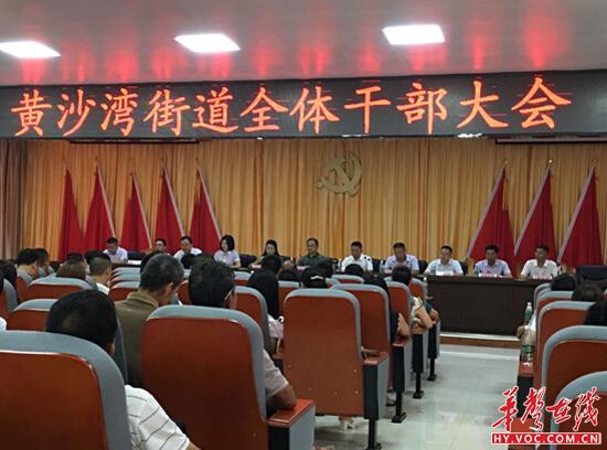 华声在线衡阳站7月7日讯(符志忠 黄亚辉 通讯员 廖红波)今天上午,黄沙湾街道召开全体干部大会。区委组织部李妍荭副部长宣读了干部人事任命文件,郑建芳常委发表了讲话,要求街道要顾全大局,坚决拥护区委区政府的重要决定;要再接再厉,继承发扬好的做法,好的经验,好的亮点;要做好示范,切实加强领导干部队伍建设;要抓好落实,切实做好当前重点工作。