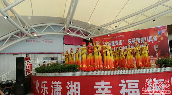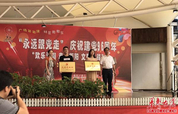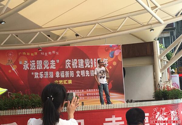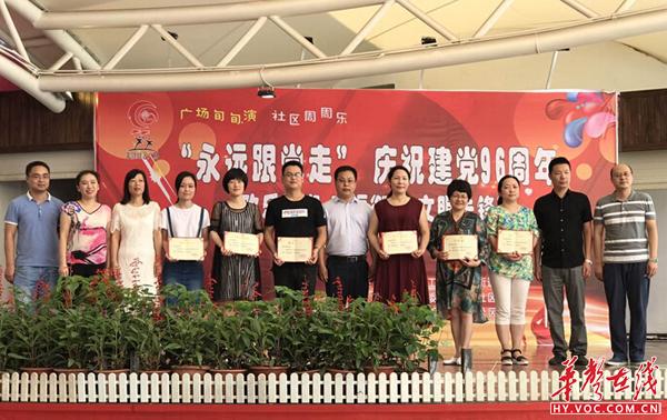 华声在线衡阳站7月10日讯(符志忠 吴长发 通讯员 李春芳)7月6日上午,衡阳市雁峰区先锋街道在民俗文化广场举行了名为“永远跟党走,庆祝建党96周年”暨“欢乐潇湘,幸福衡阳,文明先锋”大型文艺演出。街道联点县级领导、街道机关全体人员、各社区党组织、非公党组织以及居民等共200多人参加。