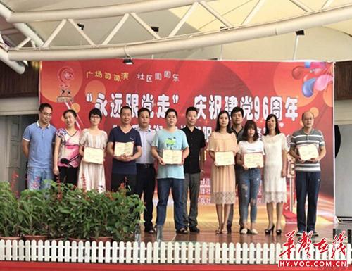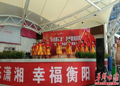 华声在线衡阳站7月10日讯(吴长发 通讯员 刘耒)7月4日上午,由先锋街道党工委、先锋街道办事处、举办的 “永远跟党走,庆祝建党96周年”暨“欢乐潇湘,幸福衡阳,文明先锋”文艺汇演在先锋社区民俗文化广场隆重举行,先锋社区组织居民近百人参加了活动。