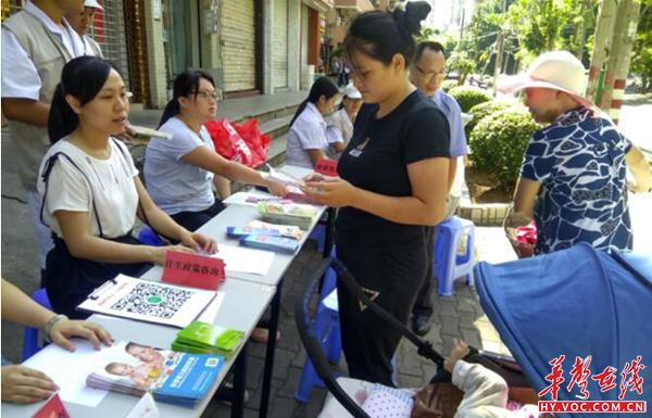华声在线衡阳站7月11日讯(符志忠 黄亚辉 通讯员 王海玲)7月11日上午,五一街道建设新村社区、来雁塔社区、望城路社区通过召开大型公益讲座、开展免费诊疗活动以及向居民群众发放计生政策宣传册、避孕药具等方式在辖区内开展“树立科学、文明、进步的婚育观念”为主题的“7.11世界人口日”宣传活动。