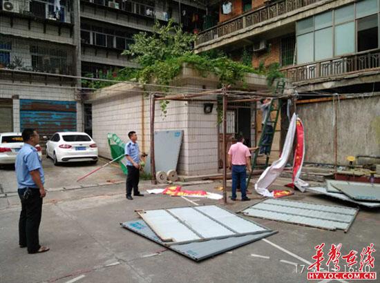 7月11日,潇湘城管中队依法将违法搭建的铁硼拆除。司前街38号华融湘江后栋家属楼居民为一己私利,擅自违法搭建铁棚,直接阻碍了小区消防通道,严重影响了居民群众的出行。当日,潇湘城管中队携司前社区工作人员来到现场,下达违建拆除通知书,组织拆违人员依法拆除近50平方米违法搭建铁棚,保证了小区消防通道的畅通,还群众一个整净的环境。通讯员 肖伟 封柳村 摄影报道