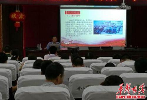 最后对夏明翰精神的当世价值进行了归纳总结,要求当代共产党员要站稳立场,做信仰坚定的模范;要善于学习,做解放思想的模范;要剖析自我,做诚信廉洁的模范;要立足本职,做忠于职守的模范;要牢记宗旨,做执政为民的模范。要求广大党员要时刻牢记自己的身份,全党上下同心同德,不断巩固执政基础、提高执政能力,让夏明翰精神激励青山的全体党员砥砺前行!为“五个新衡阳”的建设共同努力!