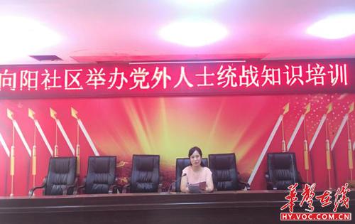 华声在线衡阳站7月28日讯(黄亚辉 通讯员 王佩)为进一步做好社区统战工作,加强和谐社区建设。7月26日,向阳社区党总支组织全体工作人员及居民代表召开对党外人士统战知识培训会,会议由向阳社区党总支书记谢俊芳主持。