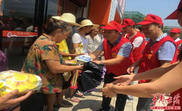 当天,市滨江公司组织党员志愿者服务队携手珠晖区粤汉街道机场社区开展“为环卫工人送清凉”,志愿者将自筹资金购买的解暑降温用品,亲交手给顶着炎炎烈日辛劳工作的环卫工人们。
