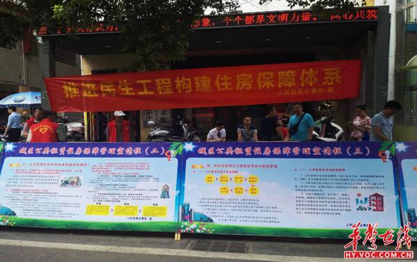 华声在线衡阳站7月31日讯(黄亚辉 通讯员 宋绍萍)人民路社区值公共租赁住房保障政策宣传周活动之际,在市群艺馆前坪开展保障性住房政策宣传活动。社区工作人员为居民宣传讲解了廉租住房、经济适用住房、公租房住房的申请条件和审核流程,发放了印有住房保障咨询电话、投诉监督电话的宣传资料,并现场就居民提出的问题解疑答惑。