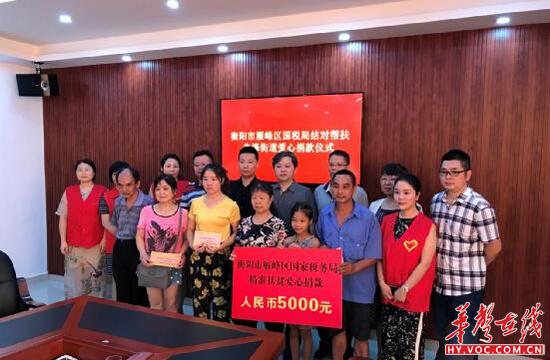 华声在线衡阳站7月31日讯(符志忠 吴长发 通讯员 陈慧菁)为落实精准扶贫政策, 7月26日,雁峰区国税局到先锋街道携手开展爱心帮扶活动。
