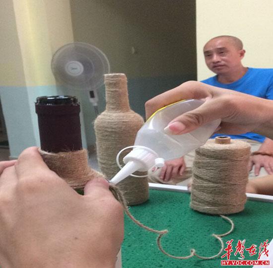 活动中,社工老师与到场的组员先进行了自我介绍,并引导组员通过一些互动小游戏为活动的开展营造出轻松有趣的氛围。然后是丝网花、工艺花瓶的制作,社工老师演示了制作方法,手把手细致教授,组员们积极配合,互相协作,对暂时没学会的智障组员,其他组员并没有表现出嫌弃的想法,而是主动把简单的工作交给他,并给予实践指导,相互之间表现出了理解、共融、分享。