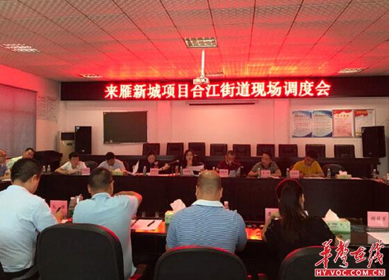 华声在线衡阳站7月31日讯(符志忠 黄亚辉 通讯员 袁自强 刘芳)7月28日,石鼓区委副书记谢海蓉一行到合江街道对来雁新城项目进行现场调度,组织召开了座谈会,区指挥部、街道党政领导及来雁公司代表参加了会议。