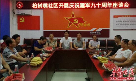 华声在线衡阳站8月2日讯(黄亚辉 通讯员 戴谷珍)值中国人民解放军建军90周年来临之际,7月31日,合江街道柏树嘴社区举行“八一”座谈会,同庆建军佳节,共叙军民情长。