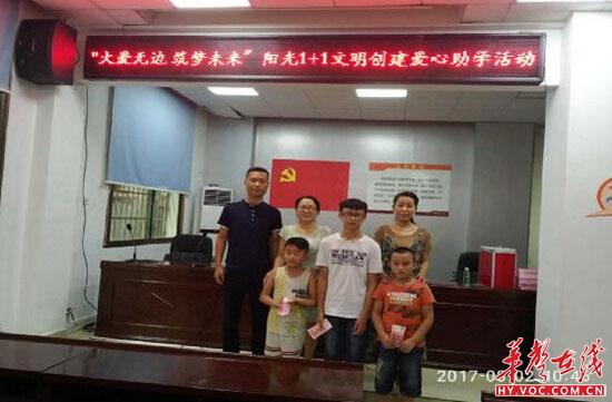 华声在线衡阳站8月3日讯(黄亚辉 通讯员 周丹梅)8月2日,衡阳市石鼓区人民街道人民路社区党总支联合辖区企业苏宁电器商城在社区会议室开展“大爱无边,梦祝未来”阳光1+1文明创建爱心助学活动。该社区的4名贫困学生领取到了爱心助学捐款。