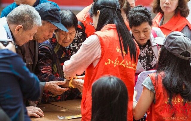 肖秋阳生病住院,“小红人”第一个赶到,在病床前无微不至照顾;逢年过节,“小红人”带着水果、牛奶上门,陪老人说说话、吃顿饭;周末,“小红人”还会帮老人理发、打扫卫生……渐渐地,在志愿者的陪伴下,肖秋阳走出失独阴霾,也投身成为一名“小红人”。