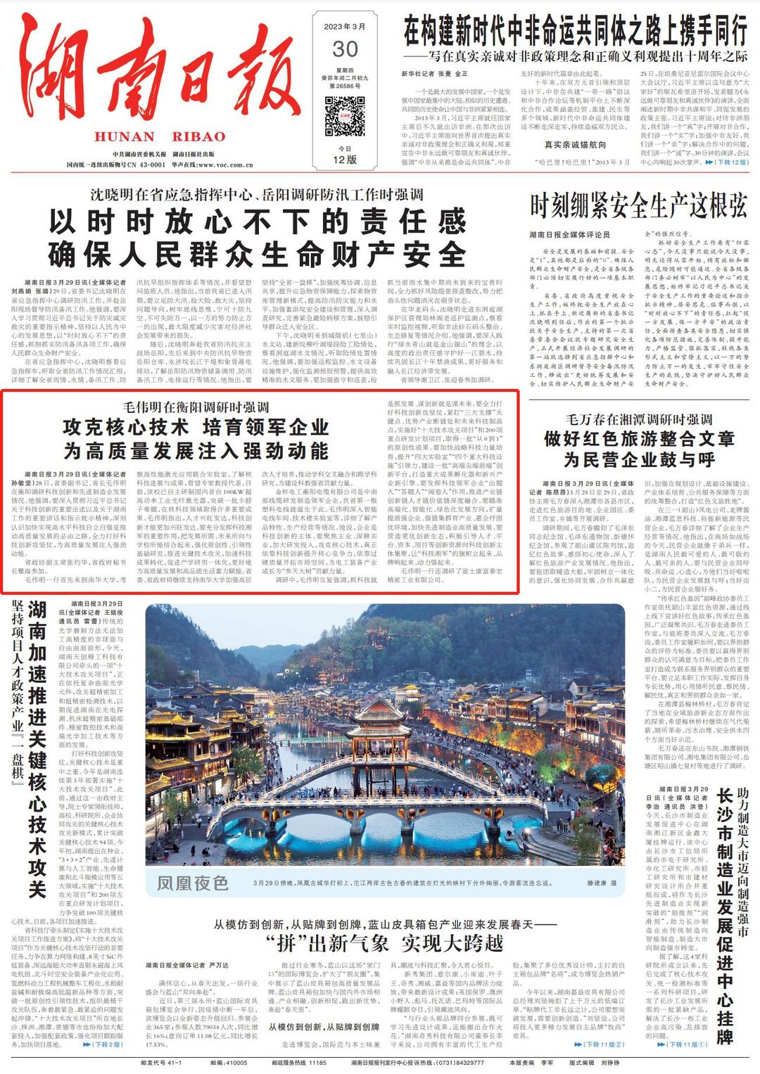 (原载于3月30日湖南日报1版)攻克核心技术 培育领军企业 为高质量发展注入强劲动能-----湖南日报数字报刊