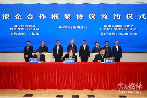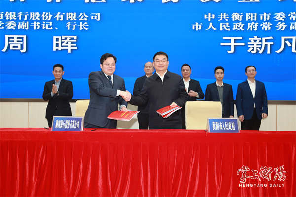 3月29日下午,衡阳市人民政府与湖南银行股份有限公司战略合作框架协议签约仪式举行。市委书记刘越高出席并见证签约。衡阳市委副书记、市长朱健,湖南银行党委书记、董事长黄卫忠先后致辞。