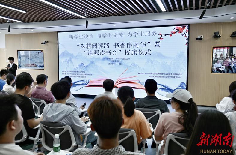 南华大学经济管理与法学学院党委书记彭建军为“清源读书会”现场授旗。他表示,“清源”一词出自宋代朱熹《观书有感》中“问渠哪得清如许,为有源头活水来”这句诗。同学们要爱读书、读好书、善读书,从书中不断汲取新的知识,才能使自己永葆青春与活力。