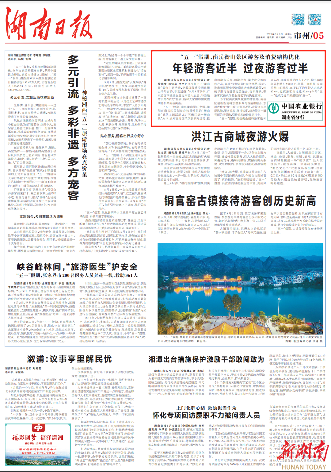“五一”假期,南岳衡山接待游客逾50万人次,实现旅游总收入5亿元,均比2022年同期增长2倍以上。值得一提的是,来南岳衡山的游客,35岁以下的年轻人占比达47.6%,过夜游客占比达52.6%;今年“五一”也成为近年来最旺的“五一”。