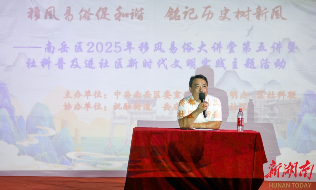 最后,南岳文史专家陈瑶光带来的《抗战时期的南岳衡山》主题授课,将大家带回那段烽火岁月。他娓娓道来南岳深厚的抗战历史与文化积淀,让大家深刻感受这座山城在民族存亡关头的重要贡献,增强群众的历史认同感和民族凝聚力。
