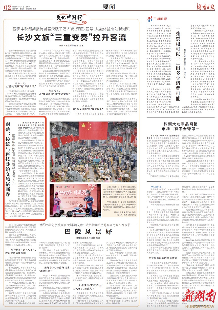 南岳:传统与科技共绘文旅新画卷,国庆中秋假期接待游客超140万人次-----湖南日报数字报刊