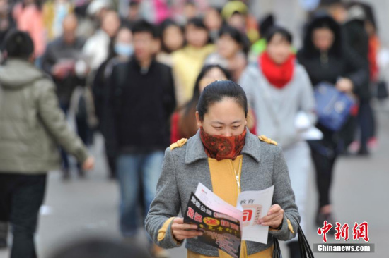 资料图:2014年11月30日,在山西太原一处国家公务员考试考点,考生们有序进入考场。中新社发 韦亮 摄