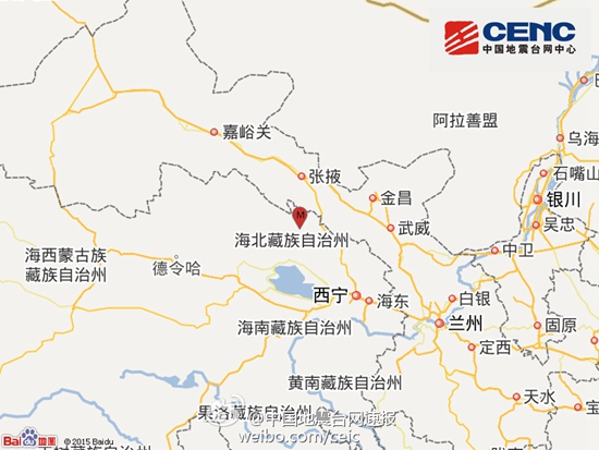 新华网西宁11月23日电(记者庞书纬)据国家地震台网测定,北京时间11月23日5时2分,在青海省海北藏族自治州祁连县(北纬38.0度,东经100.4度)发生5.2级地震,震源深度约10公里。
