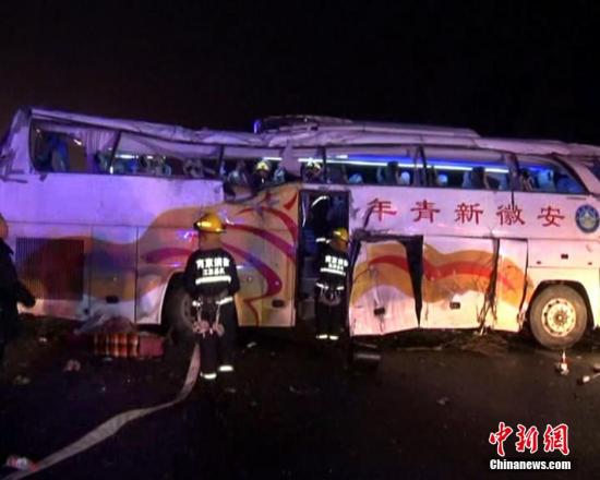 2015 年12月25日消息,江苏南京,昨天晚上9点半左右,在宁杭高速上发生一起重大交通事故,一辆大客车刹车失控撞上路中间的隔离栏失控,车上多人被甩出车外,事故造成多人死伤。据了解,这是一辆从上海开往合肥的大客车,当时行驶在宁杭高速上,方向是南京往杭州方向,距离郭庄收费站2公里处,车上共有乘客 2、3十人。图片来源:视觉中国