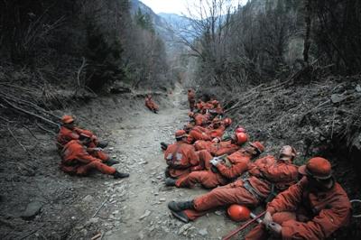 3月10日,完成一天任务之后,战士们在山脚下的路边整顿休息。