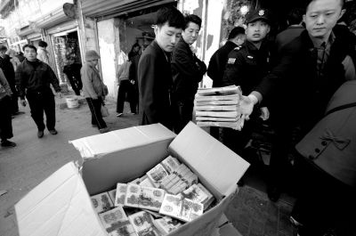 昨天,海淀区知春路社区内的两家非法销售冥票店面被查获。京华时报记者 张斌 文静 摄影报道
