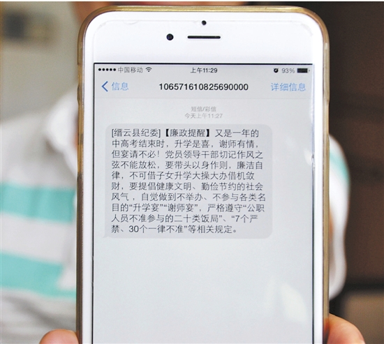 同样,兰溪、路桥的毕业班教师都收到了由县(区)纪委派驻教育局纪检组群发的提醒短信,要求他们践行新风正气,并劝导学生家长取消宴请;武义县还由派驻纪检组、教育部门开展警示教育,要求全体教师公开签订承诺书,承诺不参加任何名目的宴请。