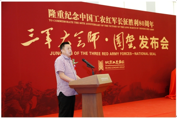 北京工美集团董事长李节先生致辞表示:“北京工美集团作为国礼御制单位,特集合最优秀的国礼创作团队,历经半年,创造完成了国礼级精品——《三军大会师·国玺》,向长征胜利80周年隆重献礼!”