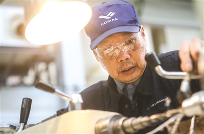 工程师在加工C919的气密试验接头。新华社记者 裴 鑫摄
